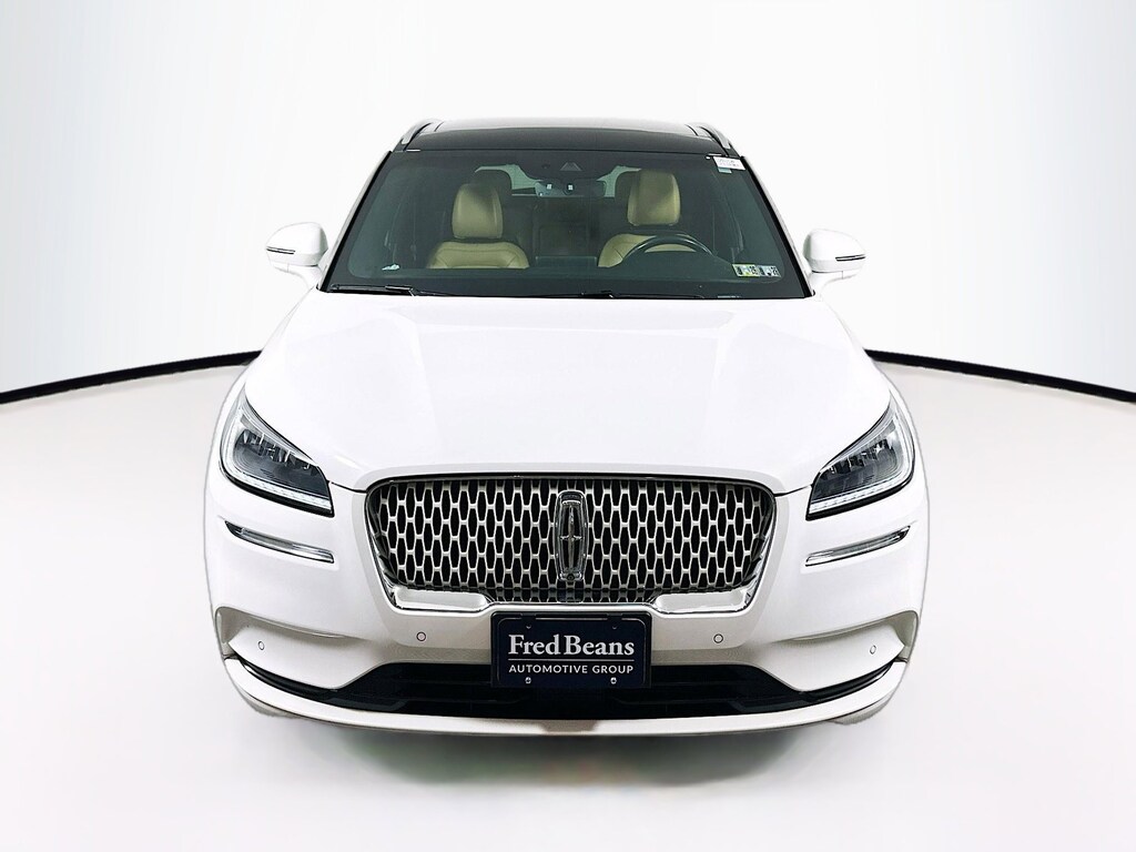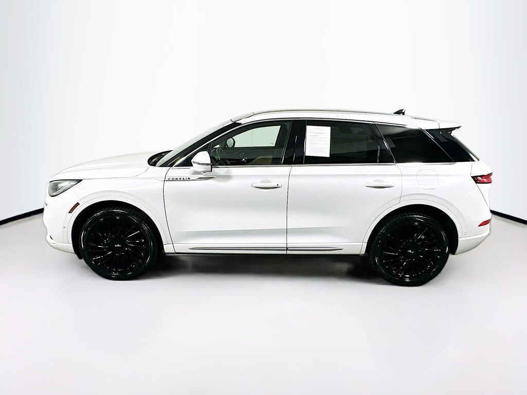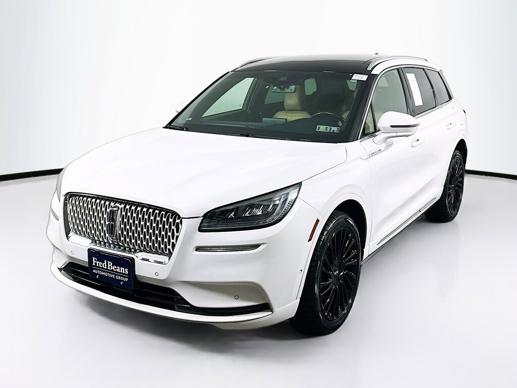 This Corsair Reserve is loaded with premium features including LED headlamps, power-folding exterior mirrors, Apple CarPlay, Android Auto, ambient lighting, blind spot monitoring with rear traffic alert, lane assist, remote engine start, and a panoramic Vista Roof with power sunshade. It offers comfort and luxury with premium leather heated and ventilated front seats, heated rear seats, a heated steering wheel, dual-zone climate control, intelligent adaptive cruise control, and memory seating. The Monochromatic Package in Pristine White enhances its style with unique body-color accents, 20-inch aluminum wheels, and a body-color mesh grille. Technology highlights include SYNC 3 communication and entertainment system, Lincoln premium audio with 10 speakers, navigation, SiriusXM radio, 360-degree camera with washer system, Active Park Assist 2.0, reverse brake assist, evasive steering assist, rain-sensing wipers, and front, side, and rear parking sensors.