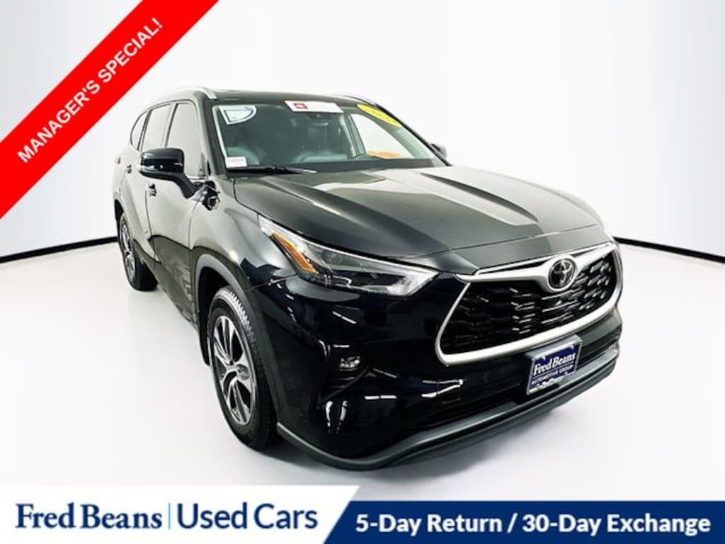 2022 Toyota Highlander XLE 3.5L V6 DOHC 8-Speed Automatic AWD 4D Sport Utility Midnight Black Metallic Free First Oil Change, 5 Day Return / 30 Day Exchange, Auto Reward Program, Highlander XLE, 4D Sport Utility, 3.5L V6 DOHC, 8-Speed Automatic, AWD, Midnight Black Metallic, Black w/SofTex Seat Trim.