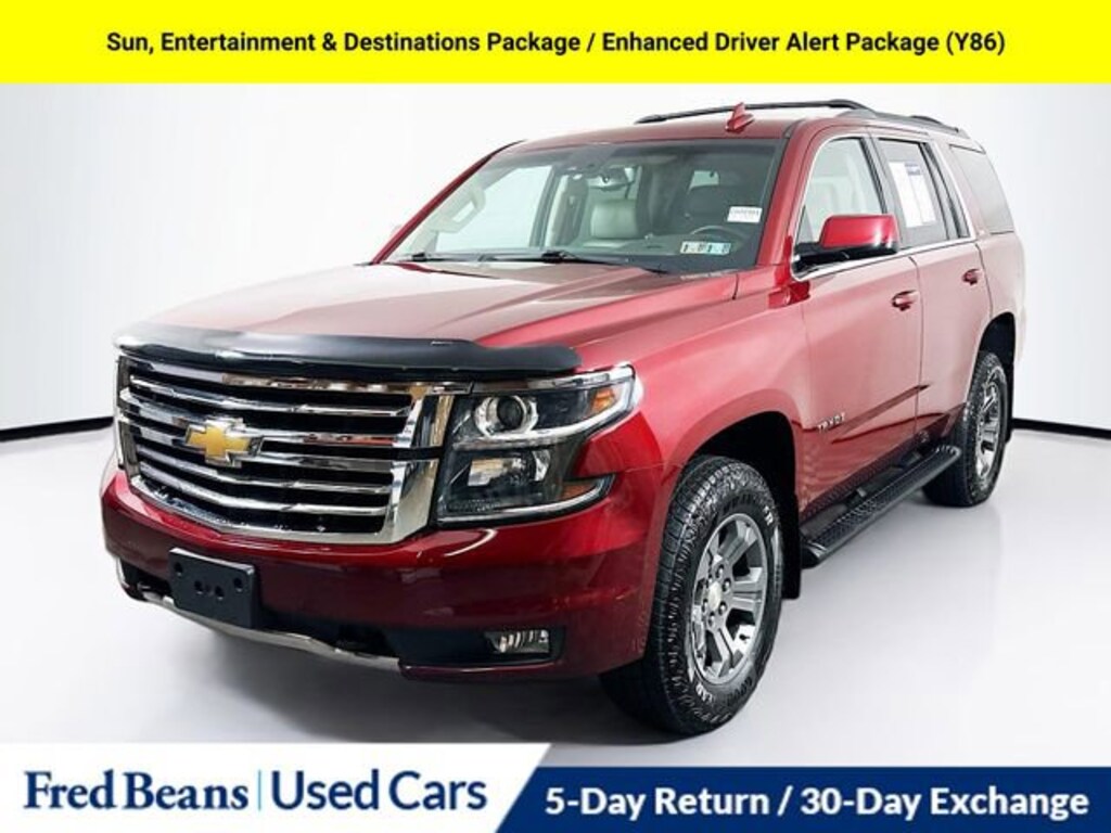 The impressive list of features on this Tahoe is sure to delight. Enjoy the convenience of the Chevrolet MyLink infotainment system with navigation, the comfort of heated front seats, and the added security of forward collision alert, lane keep assist, and low-speed automatic braking. The power sunroof and rear-seat entertainment system will keep everyone entertained, while the off-road-focused upgrades like hill descent control and black tubular assist steps ensure you're ready for any adventure.