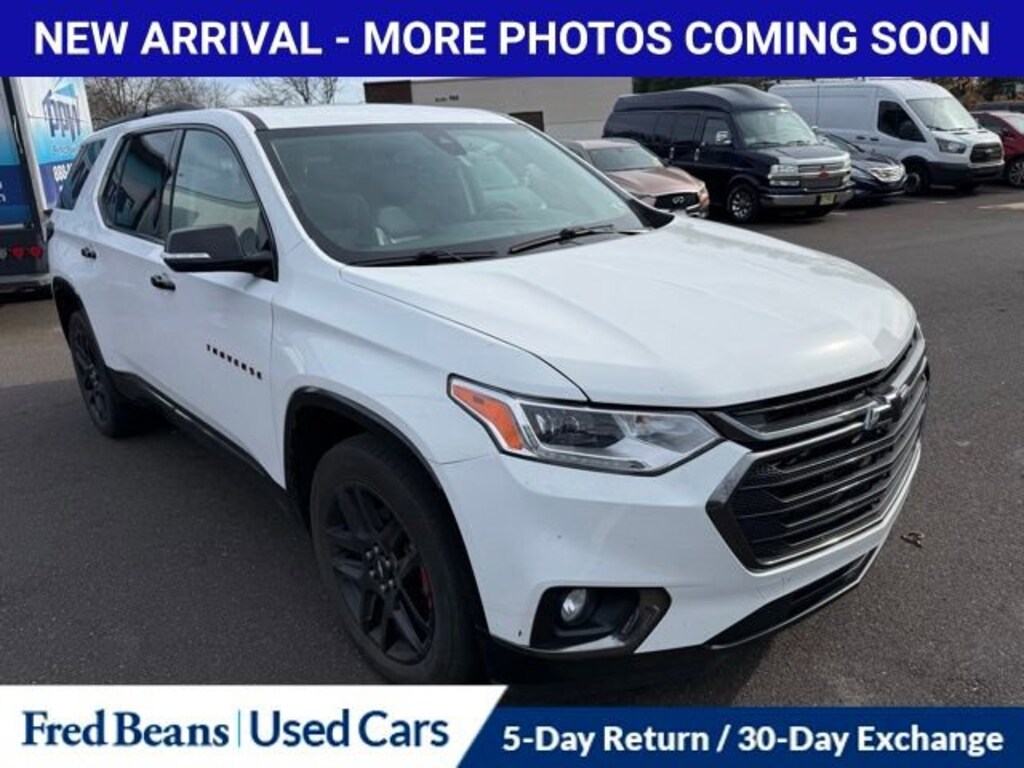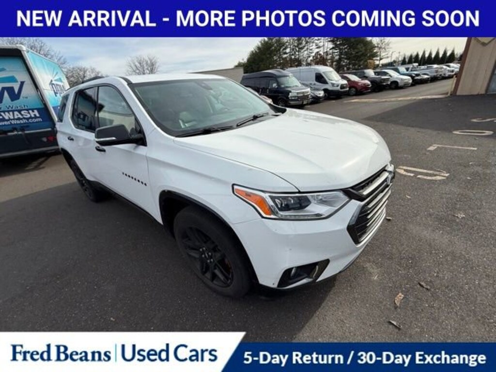 CARFAX One-Owner.Recent Arrival! 2019 Chevrolet Traverse Premier 3.6L V6 SIDI VVT 9-Speed Automatic AWD 4D Sport Utility Summit White Triton Certified Classic Vehicle, 3 Month / 4,000 Mile Comprehensive Warranty, Free First Oil Change, 5 Day Return / 30 Day Exchange, Auto Reward Program, AWD, 3rd row seats: split-bench, Apple CarPlay/Android Auto, Bose Premium 10-Speaker Audio System Feature, Navigation System.Certified. Certification Program Details: Triton Certified Shield Classic 3-Month or 4,000-Mile Comprehensive Coverage ($100 deductible) 100+ Multipoint Inspection PA State Inspection & Emissions Test Oil, Lube, & Filter Service Completed 5-Day Return Policy1 30-Day Exchange Policy2 CARFAXTM Report AutoRewards Membership See salesperson for additional offers & complete details.For better peace of mind all our used vehicles have a 127-point inspection and come with a 5-day return, 30-day exchange (As-Is vehicles are excluded). Our exclusive Auto Rewards Program provides better value with Free First Oil change, Free Pa State Safety inspections, discounts for local merchants and more. Plus, you can earn up to $2000 towards your next vehicle just by servicing with Fred Beans! As Fred Beans always says, our used cars are better because our reputation depends on it.Awards:* 2019 KBB.com 12 Best Family CarsAlthough every reasonable effort has been made to ensure the accuracy of the information contained on this site, absolute accuracy cannot be guaranteed. This site, and all information and materials appearing on it, are presented to the user as is without warranty of any kind, either express or implied. All vehicles are subject to prior sale. Price does not include applicable tax, title, license, processing and/or documentation fees. Vehicles shown at different locations are not currently in our inventory (Not in Stock) but can be made available to you at our location within a reasonable date from the time of your request, not to exceed one week. Residency restrictions may apply.