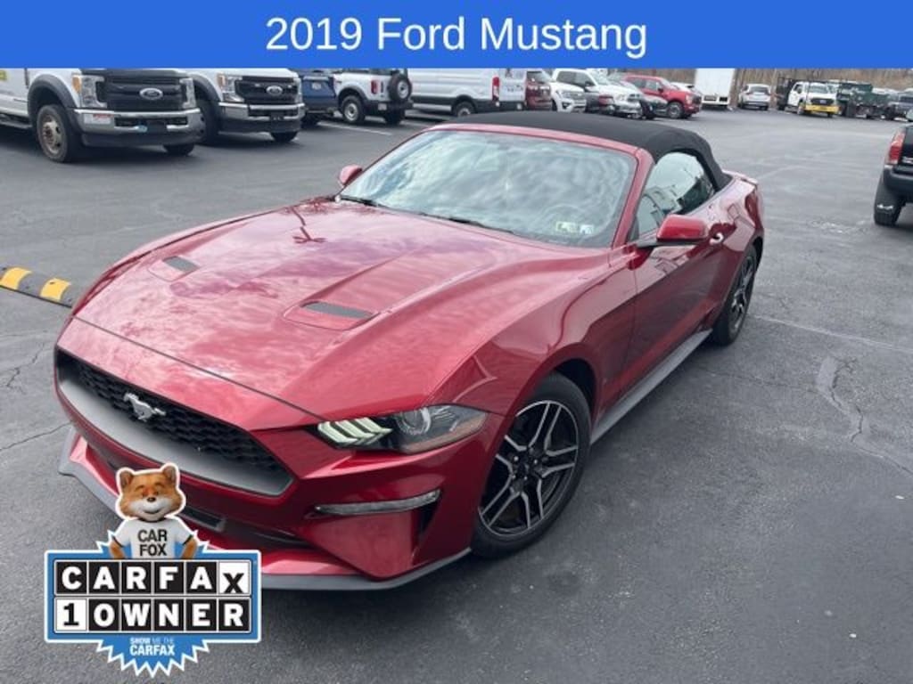 Recent Arrival! 2019 Ford Mustang EcoBoost EcoBoost 2.3L I4 GTDi DOHC Turbocharged VCT 10-Speed Automatic RWD 2D Convertible Ruby Red