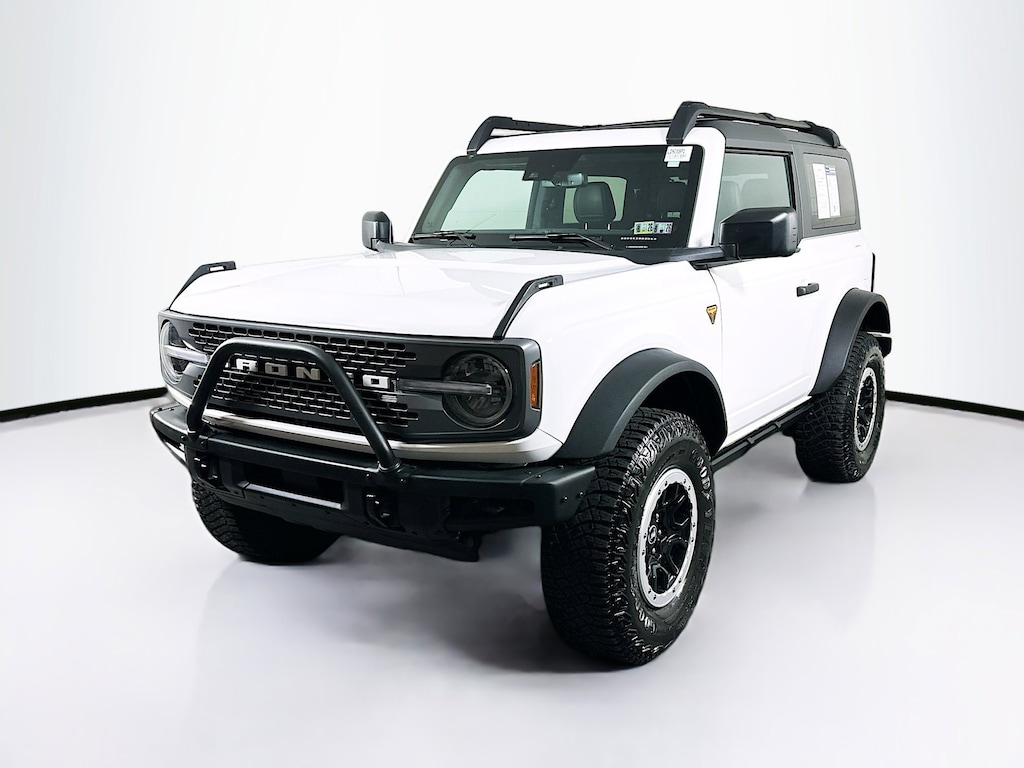 Recent Arrival! 2024 Ford Bronco Badlands in Oxford White, powered by a 2.7L EcoBoost V6 with a 10-speed automatic transmission and 4WD. This 2-door SUV was bought and serviced right here at Fred Beans and comes with a strong service history, local trade, and the remainder of its factory warranty. Equipped with the Sasquatch Package, high-clearance suspension and fender flares, position-sensitive Bilstein shocks, trailer tow package, and convertible hardtop, this Bronco is ready for any adventure. Comfort and convenience features include heated front bucket seats, dual-zone automatic climate control, LED headlamps, BLIS blind spot system, rear parking sensors, Connected Navigation, remote start, SiriusXM with 360L, and 17" black gloss-painted aluminum wheels.