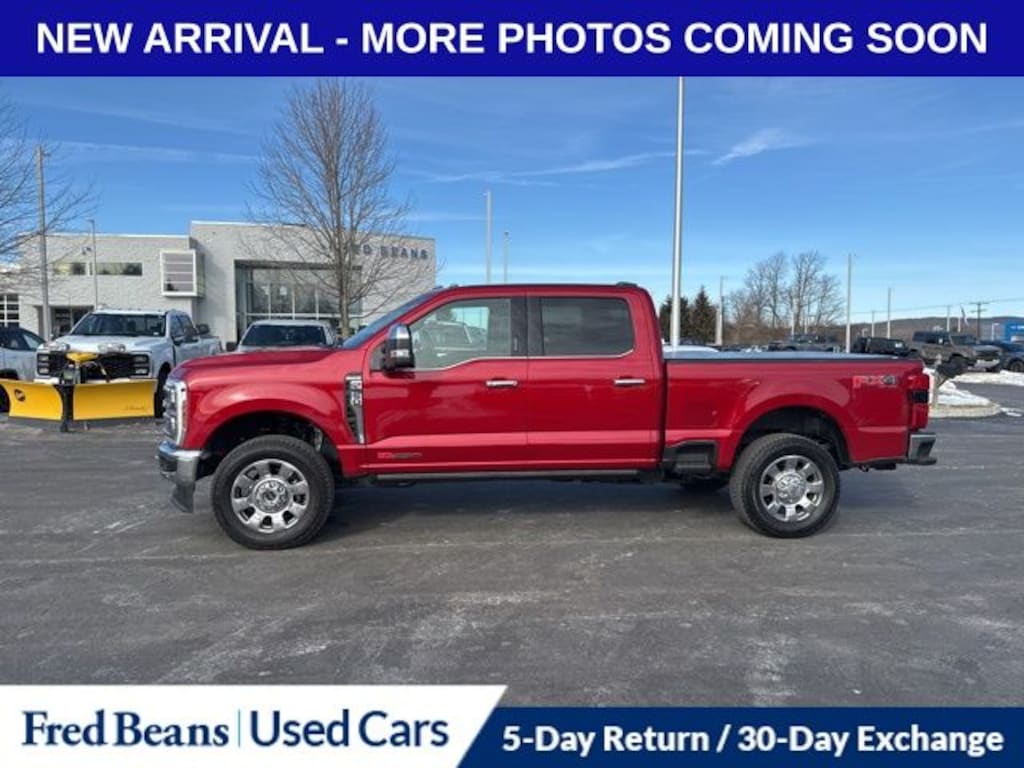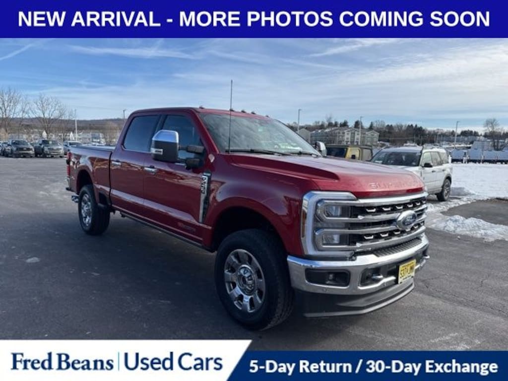 CALL NOW 908-835-8100, Q1 KICKOFF SALES EVENT!!!, $500 TRADE IN BONUS, YES! WE HAVE TRUCKS!, BEST TIME TO BUY IS NOW, Auto Reward Program, CLEAN CARFAX - ONE OWNER, NON SMOKER VEHICLE, NAVIGATION, LOW MILES, HEATED SEATS, CALL NOW!!! 908-835-8100, Remainder of Factory Warranty, 5 Day Return / 30 Day Exchange, 4WD. Recent Arrival! 2024 Ford F-250SD King Ranch 6.7L High Output Power Stroke V8 Diesel 10-Speed Automatic 4WD 4D Crew Cab Red Metallic
