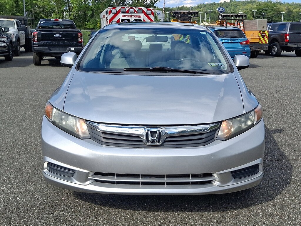 Recent Arrival! 2012 Honda Civic EX-L 1.8L 4-Cylinder 5-Speed Automatic FWD in Silver. Well-maintained local trade with great service history. Features include Gray Leather Seats, Heated Front Seats, Power Moonroof, Alloy Wheels, Automatic Headlights, CD Player, Power Windows, and Remote Keyless Entry.