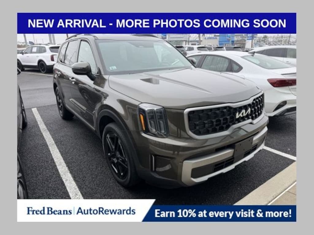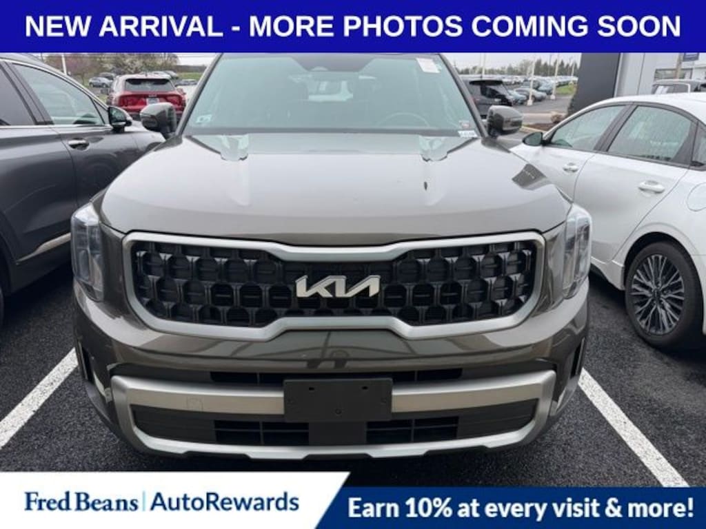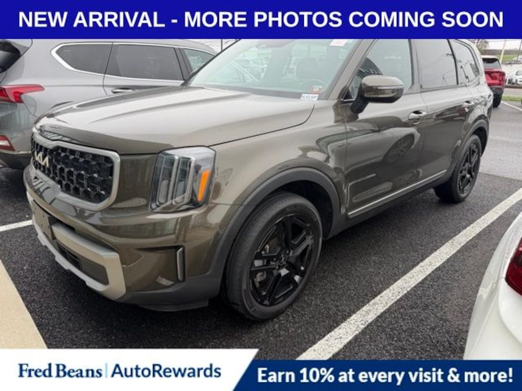 Recent Arrival! 2023 Kia Telluride EX X-Line 3.8L V6 DGI DOHC Dual CVVT 8-Speed Automatic AWD 4D Sport Utility Dark Moss 3.648 Axle Ratio, 3rd row seats: split-bench, 4-Wheel Disc Brakes, 6 Speakers, ABS brakes, Air Conditioning, Alloy wheels, AM/FM radio: SiriusXM, Apple CarPlay & Android Auto, Auto High-beam Headlights, Auto-dimming Rear-View mirror, Auto-leveling suspension, Automatic temperature control, Brake assist, Bumpers: body-color, Carpet Floor Mats, Compass, Delay-off headlights, Driver door bin, Driver vanity mirror, Dual front impact airbags, Dual front side impact airbags, Electronic Stability Control, Emergency communication system: 911 Connect, Exterior Parking Camera Rear, Four wheel independent suspension, Front anti-roll bar, Front Bucket Seats, Front Center Armrest, Front dual zone A/C, Front reading lights, Fully automatic headlights, Heated & Ventilated Front Bucket Seats, Heated door mirrors, Heated front seats, Heated steering wheel, Illuminated entry, Knee airbag, Leather Seat Trim, Leather Shift Knob, Leather steering wheel, Low tire pressure warning, Navigation System, Occupant sensing airbag, Outside temperature display, Overhead airbag, Overhead console, Panic alarm, Passenger door bin, Passenger vanity mirror, Power door mirrors, Power driver seat, Power Liftgate, Power moonroof, Power passenger seat, Power steering, Power windows, Radio data system, Radio: AM/FM Display Audio System, Rear air conditioning, Rear anti-roll bar, Rear audio controls, Rear reading lights, Rear Seat Entertainment System, Rear side impact airbag, Rear window defroster, Rear window wiper, Reclining 3rd row seat, Remote keyless entry, Roof rack: rails only, Security system, Smart Key w/ Push Button and Remote Start, Speed control, Speed-sensing steering, Split folding rear seat, Spoiler, Steering wheel mounted audio controls, Tachometer, Telescoping steering wheel, Tilt steering wheel, Traction control, Trip computer, Turn signal indicator mirrors, Variably intermittent wipers, Ventilated front seats, Wheels: 20" x 7.5" Black Finish X-LINE Exclusive.
