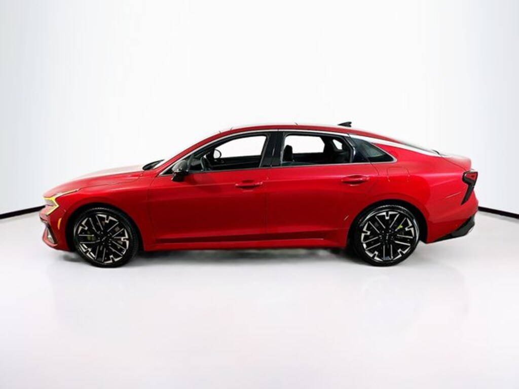 Recent Arrival! 2025 Kia K5 GT 2.5L I4 DGI Turbocharged DOHC 16V LEV3-ULEV70 290hp 8-Speed DCT FWD 4D Sedan Runway Red 4-Wheel Disc Brakes, 6 Speakers, ABS brakes, Air Conditioning, Alloy wheels, AM/FM radio: SiriusXM, Auto High-beam Headlights, Automatic temperature control, Brake assist, Bumpers: body-color, Carpeted Floor Mats, Delay-off headlights, Driver door bin, Driver vanity mirror, Dual front impact airbags, Dual front side impact airbags, Electronic Stability Control, Emergency communication system: Kia Connect (includes 1 year free trial), Four wheel independent suspension, Front anti-roll bar, Front Bucket Seats, Front Center Armrest, Front dual zone A/C, Front fog lights, Front reading lights, Fully automatic headlights, Heated door mirrors, Heated front seats, Heated Sport Bucket Seats, Illuminated entry, Knee airbag, Leather Shift Knob, Leather steering wheel, Low tire pressure warning, Navigation System, Occupant sensing airbag, Outside temperature display, Overhead airbag, Overhead console, Panic alarm, Passenger door bin, Passenger vanity mirror, Power door mirrors, Power driver seat, Power moonroof, Power steering, Power windows, Radio data system, Radio: AM/FM Audio System, Rear anti-roll bar, Rear reading lights, Rear seat center armrest, Rear side impact airbag, Rear window defroster, Remote keyless entry, Security system, Speed control, Speed-sensing steering, Split folding rear seat, Sport steering wheel, Steering wheel mounted audio controls, SynTex Seat Trim, Tachometer, Telescoping steering wheel, Tilt steering wheel, Traction control, Trip computer, Turn signal indicator mirrors, Variably intermittent wipers, Wheels: 19" x 8.0J Gloss Black Machined Finish Alloy.