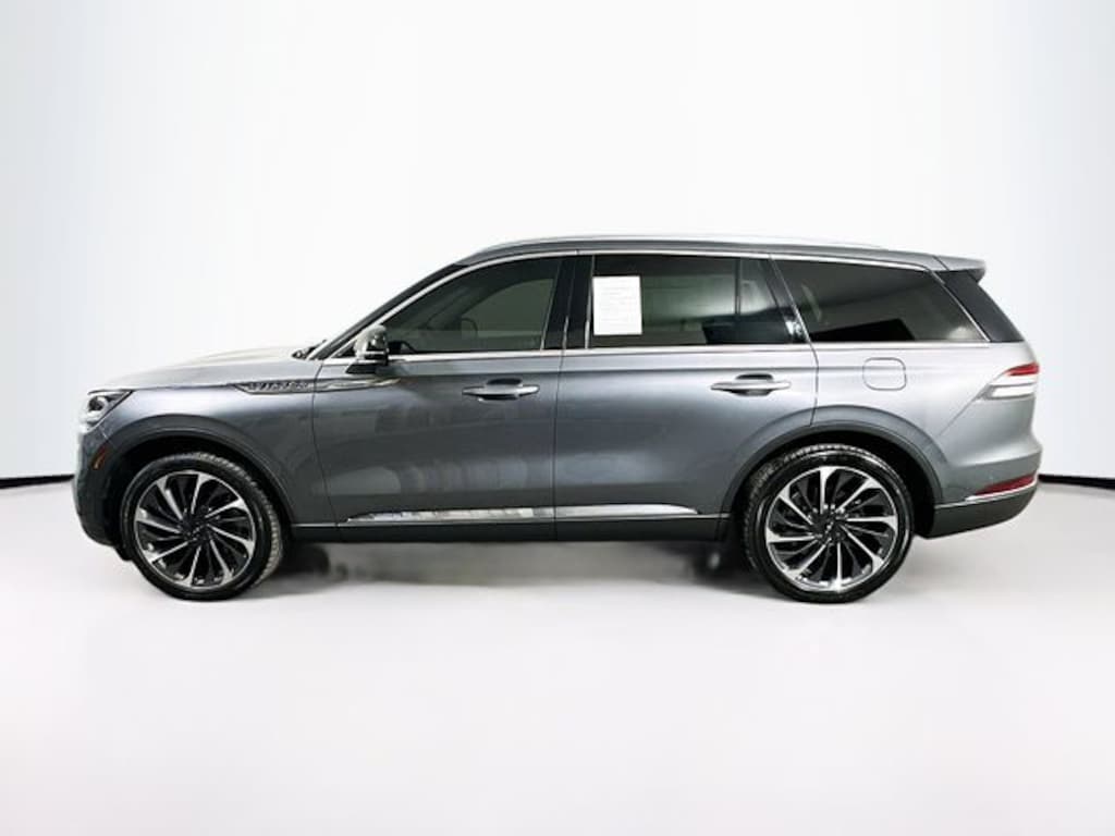 The exterior of this Aviator Reserve exudes sophistication with its Asher Gray Metallic Clearcoat finish, complemented by sleek design elements that command attention. Step inside and you'll be greeted by a spacious and well-appointed cabin, featuring premium leather-trimmed heated and ventilated front seats, a heated steering wheel, and a panoramic Vista Roof that floods the interior with natural light.