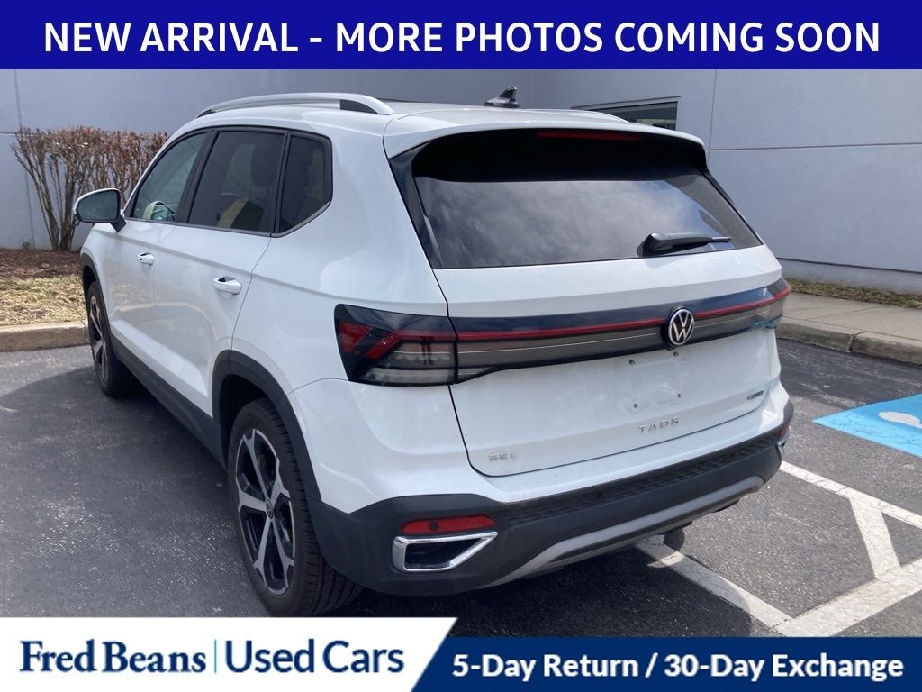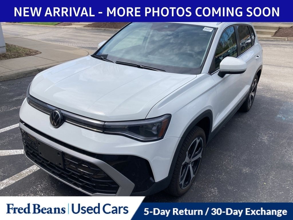 Recent Arrival! 2025 Volkswagen Taos 1.5T SEL 1.5L I4 Turbocharged DOHC 16V LEV3-SULEV30 174hp 8-Speed Automatic with Tiptronic AWD 4D Sport Utility Pure White Great Service History, Remainder of Factory Warranty, Factory Certified Vehicle, Auto Reward Program.